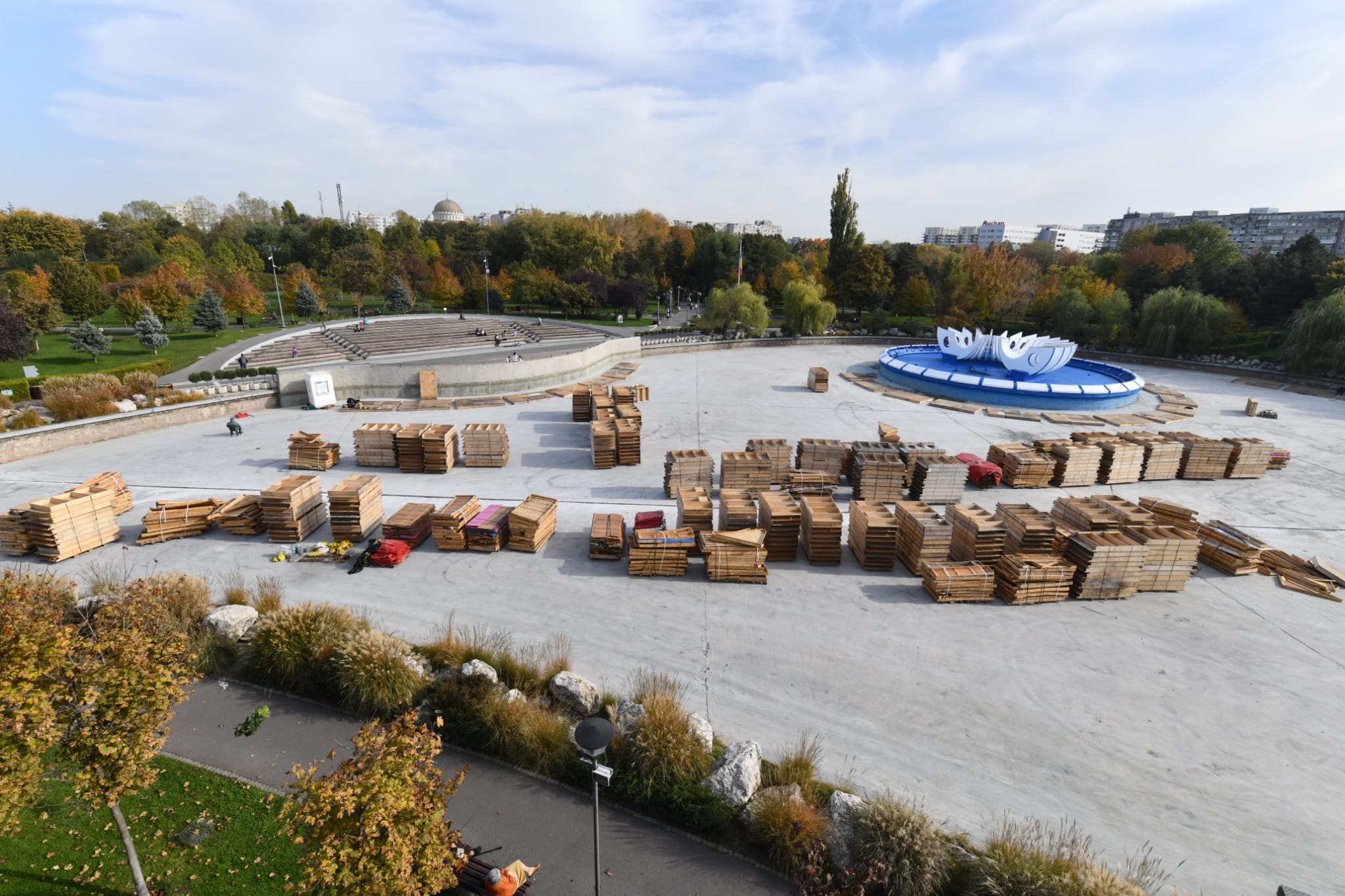 În weekend au fost aduse materialele pentru cele 64 de căsuțe din cadrul târgului, iar de astăzi au început să fie montate în cuva lacului din parc.